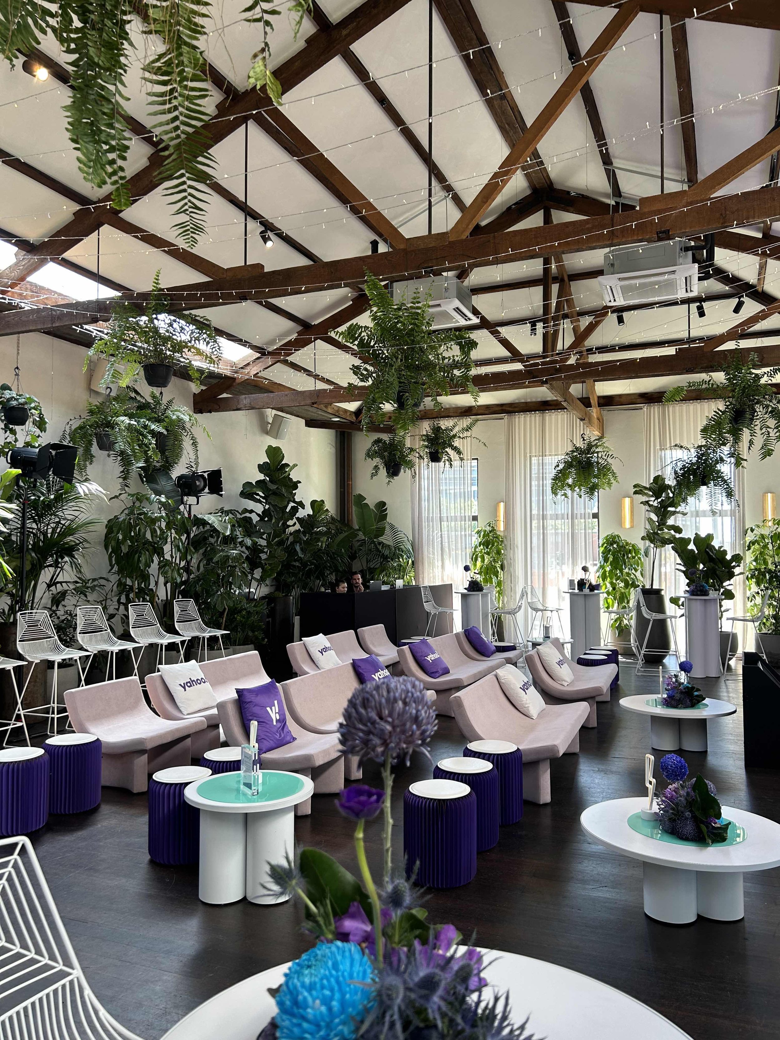 It revolves around emerging technologies and immersive experiences. The event design took each audience on a journey that amplified and supported this vision for 2024. The space was designed to embrace a futuristic and bold style, that immersed guests in comfortable seating zones for presentations and playful networking spaces that told of story of Yahoo’s brand.”